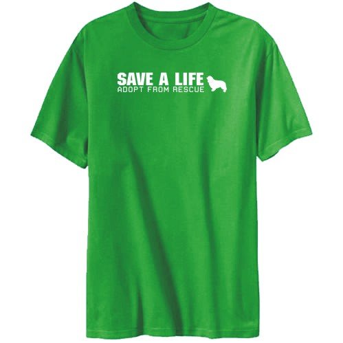 T-Shirt Mens Green " Save a life, adopt from rescue - Cavalier King Charles Spaniel " Dogs Review