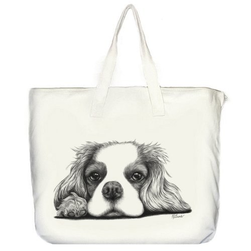 Cavalier King Charles Spaniel Dog Art Large Zippered Canvas Tote Bag Review
