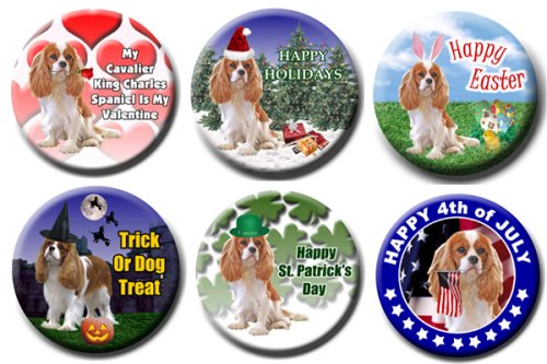 Cavalier King Charles Spaniel Set Of 6 Holiday Pin Badges No 2 Review